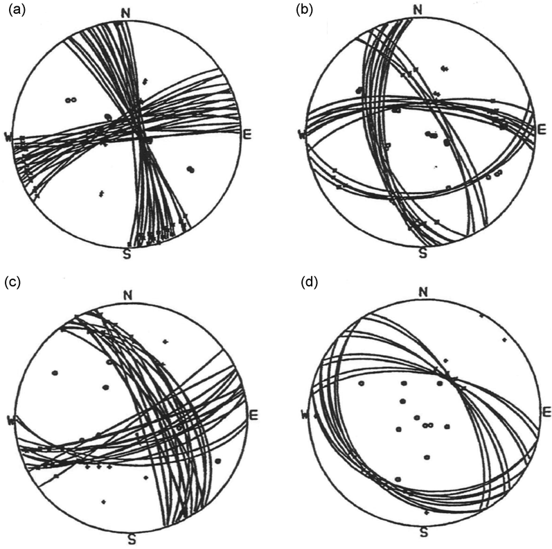 Crucially, the granite is tight: it contains very little connected pore space. Fluids don’t flow easily through the intact matrix. Instead, most permeability comes from natural fractures and joints – planes of weakness formed during the granite’s cooling and its long subsequent tectonic history. Borehole image logs at Rosemanowes revealed two main sets of steeply dipping joints: one trending roughly NW–SE (often called Set 1), and another roughly NE–SW (Set 2; Baria et al., 1984b, 1984e). These pre‑existing joint sets would later prove central to understanding how the injected fluid moved and how the induced seismicity was organised.