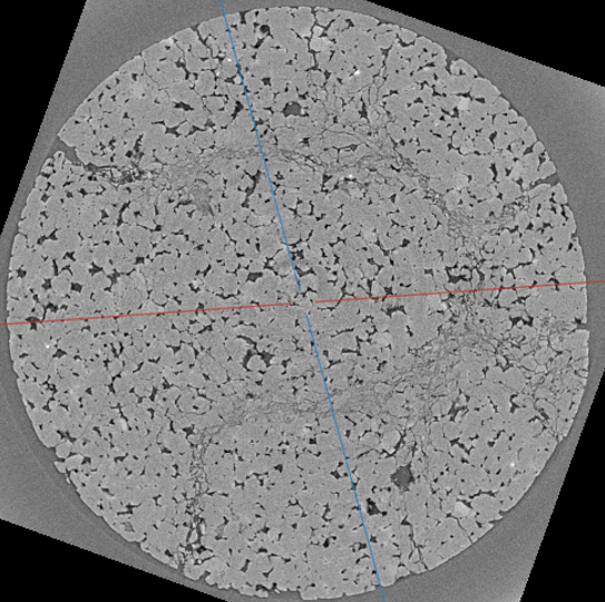 Granular solids (e.g., sandstone, concrete, fault gouge, porous chalk) behave differently from homogeneous solids. They comprise stiff mineral grains cemented by weaker phases and contain abundant internal defects—microcracks, grain contacts, and intergranular bonds. Although these features are small (nanometres to microns), they are numerous and typically control bulk compliance and wave attenuation. A compressed pack of glass beads is also a granular material: under sufficient confinement it develops solid-like behaviour governed primarily by contact mechanics. Below shows representative X-ray micro-CT slices of two granular solids imaged in situ under triaxial loading.