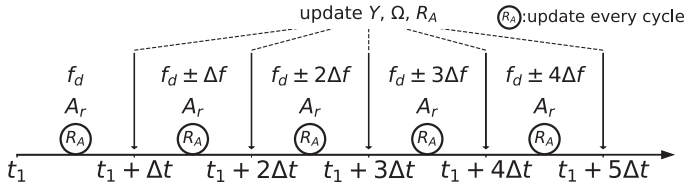 - Step the frequency by $ \Delta f $ and repeat, sweeping upward or downward.